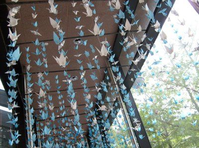 These cranes, I’ve seen them flocked by the thousand. Hung from ceilings or as curtains by barely visible filament, a traditional ritual –senbazuru-at Japanese weddings.