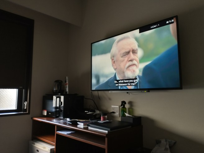 I put the kettle on, plug the Firestick into the HDMI 2 input hidden behind the TV, and I am soon atop the twin mattress, my aching feet escaped from the Doc Martens.